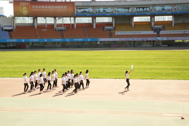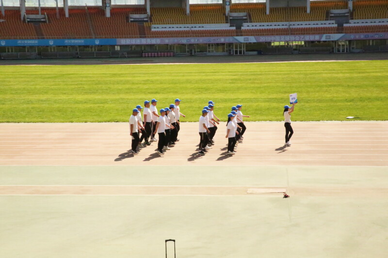 現在接受大會檢閱的是:乘風破浪打工隊,他們是財務部,維修部和庫房的聯隊。人使財增值,財使人興旺。他們一直以來為全體員工提供了無微不至的關懷和強大的精神動力。過去,他們總是藏在幕后,兢兢業業,任勞任怨,默默無聞的工作著,奉獻著!今天他們從幕后走向臺前,從配角變成主角,他們要在運動場上展現風采,力爭在這個群雄逐鹿的運動場上闖出自己的一片天空!