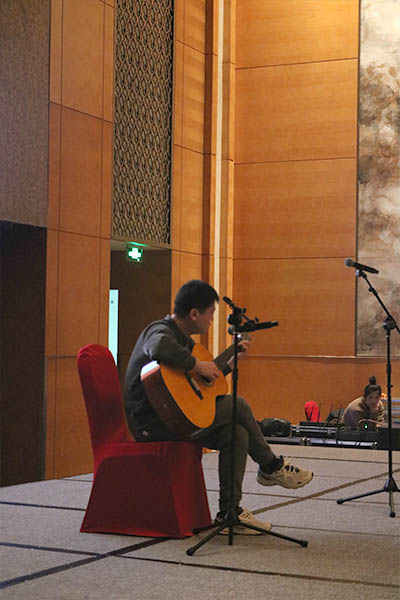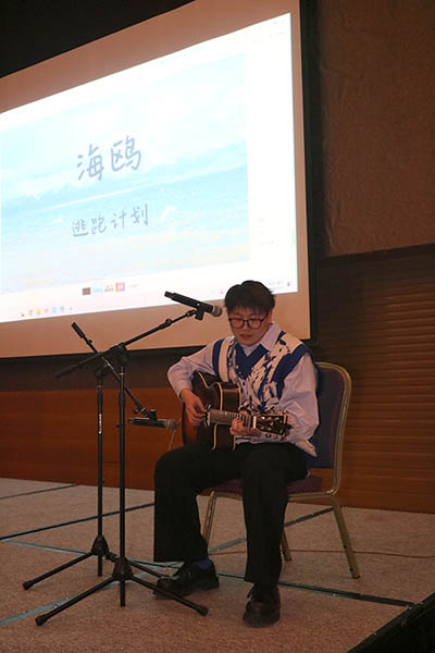 一首吉他彈唱《海鷗》,他的歌聲清澈悠揚,令人心曠神怡。