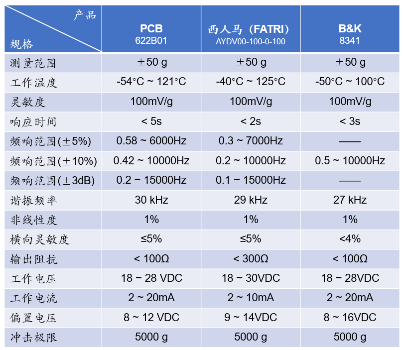 從產(chǎn)品技術(shù)和可靠性兩個(gè)維度上來看,進(jìn)口品牌美國PCB、丹麥B&K和中國自主品牌西人馬(FATRI)的工業(yè)級(jí)加速度傳感器能夠比較全*的詮釋這兩個(gè)維度。