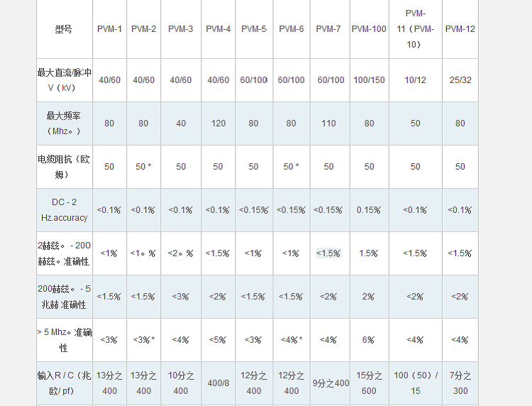 北*星制造兩種主要類型的高壓探頭– 專為便攜性和寬帶寬設(shè)計的PVM系列,以及專為長壽命和高精度而設(shè)計的獨(dú)立式VD系列。兩種類型的探頭均可與1兆歐輸入示波器(標(biāo)準(zhǔn))一起使用,或與各種輸入阻抗的儀表一起使用(訂購時指定儀表類型)。探針也可用于OEM應(yīng)用的“裸露”版本。